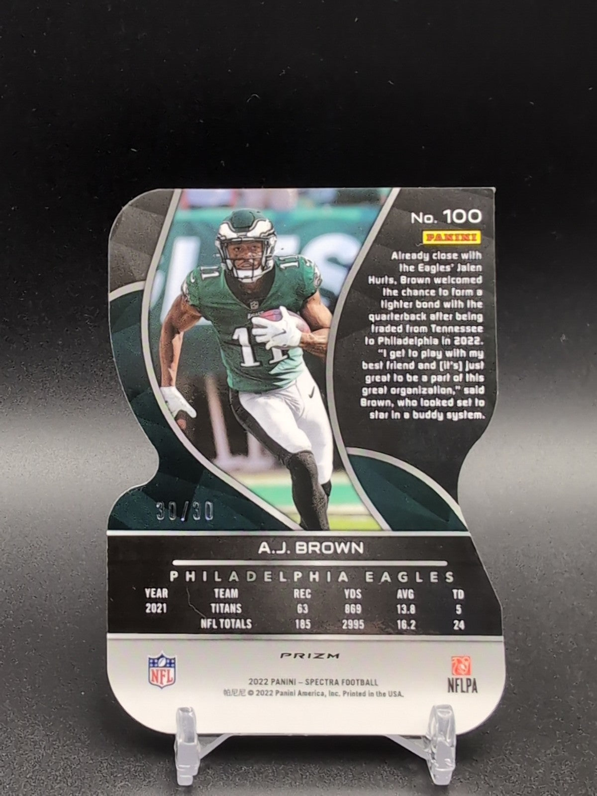 2022 Spectra #100 A.J. Brown Neon Green Die-Cut Prizm /30 Philadelphia Eagles