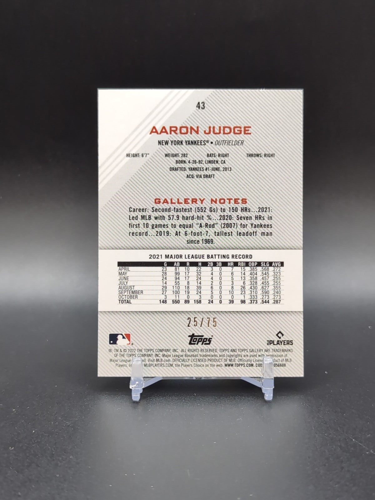 2022 Topps Gallery Aaron Judge #43 Blue /75 New York Yankees