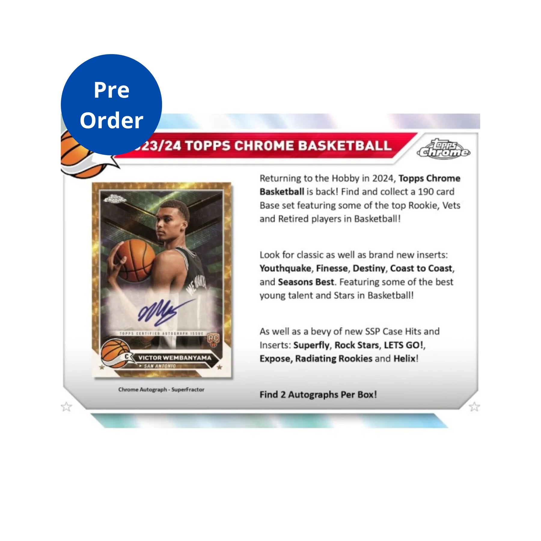 Topps Chrome returns to Basketball for the first time in 15 years! This installment pays tribute to the brand's past, while pushing towards the future!