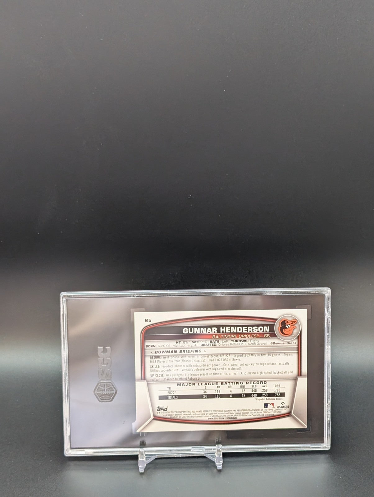 2023 Bowman #65 Gunnar Henderson RC Rookie SGC 10 Gem Mint