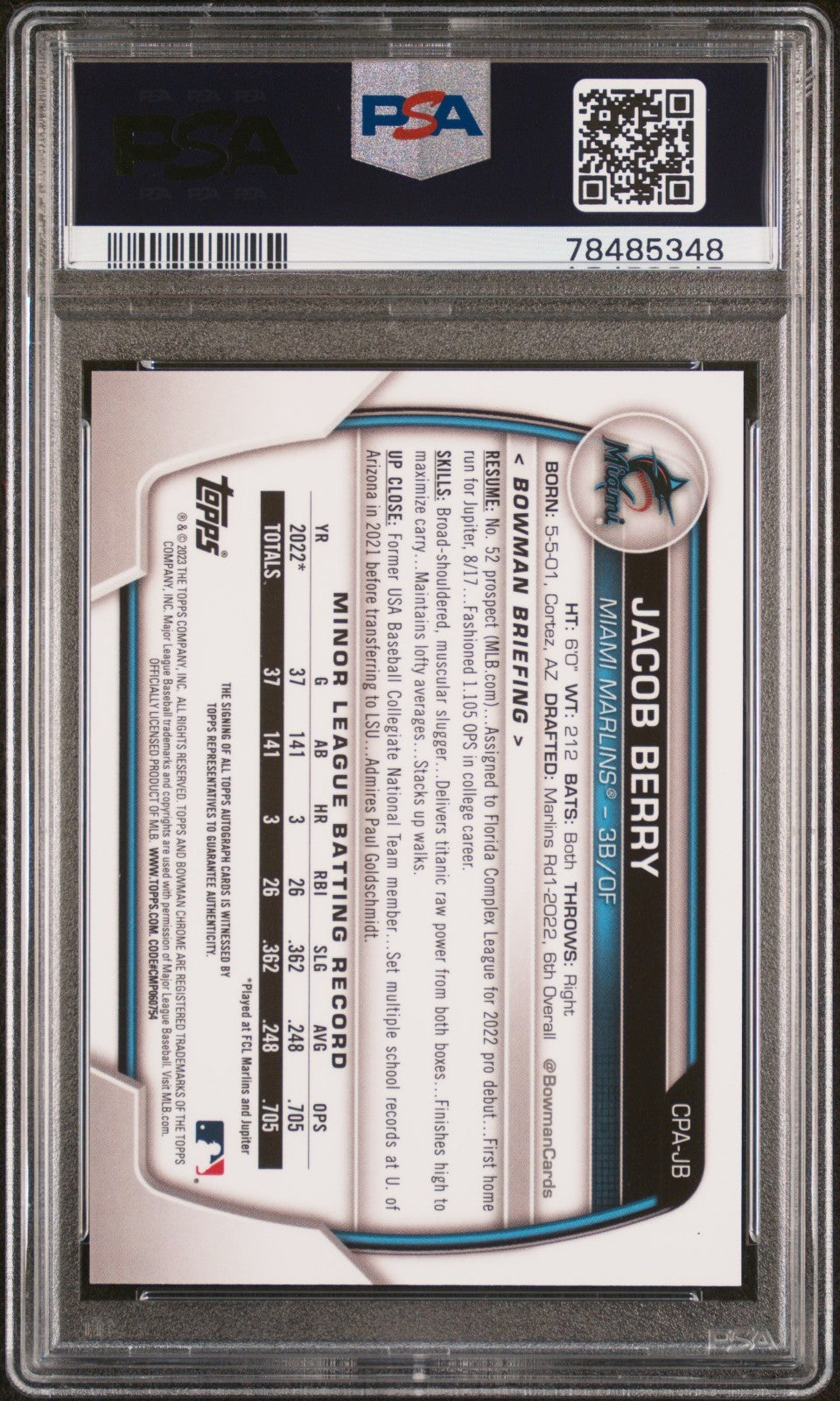 2023 Bowman Jacob Berry Chrome 1st Auto #CPA-JB Marlins PSA 9