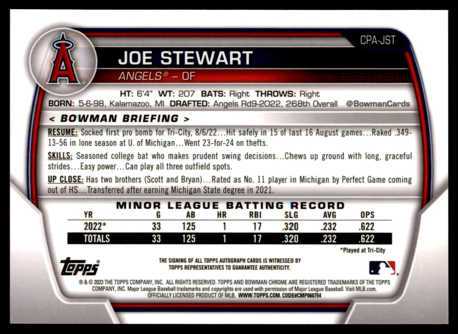 2023 Bowman Joe Stewart #CPA-JST Chrome Prospect Autographs Blue Lunar Crater Re