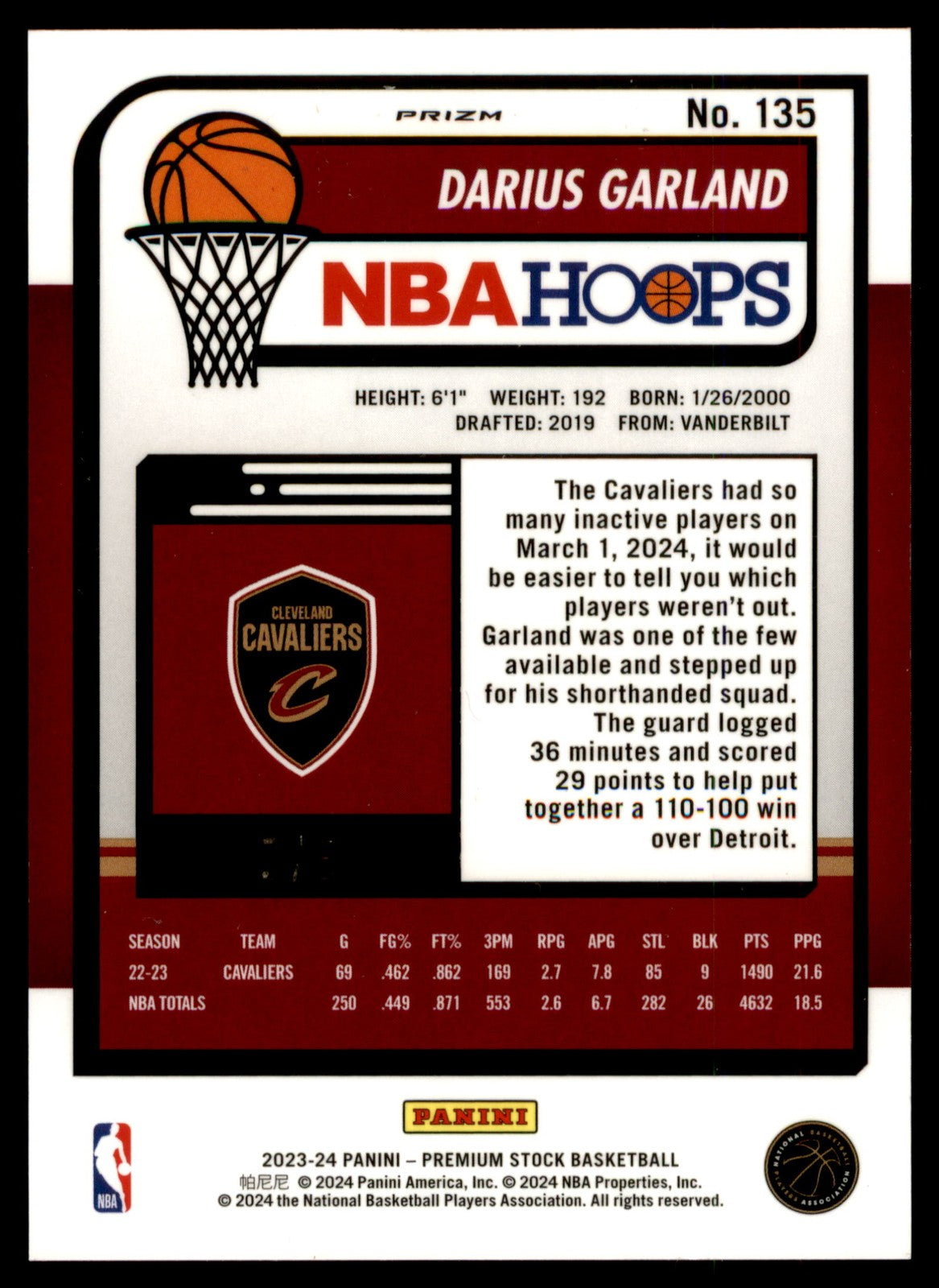 2023 Panini Hoops Premium Stock Darius Garland #135 Disco Green Prizms /5