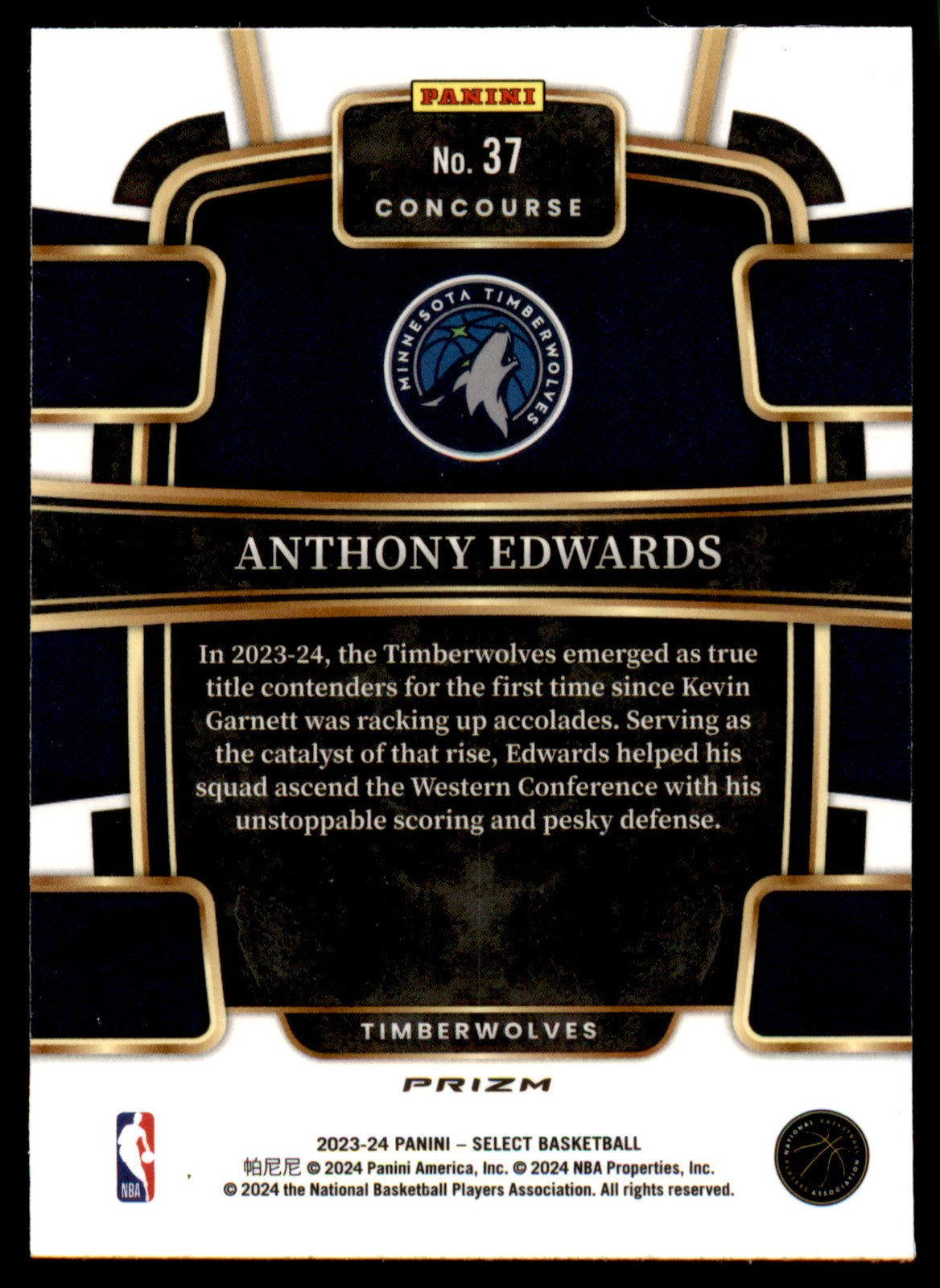 2023 Panini Select Anthony Edwards #37 Cracked Ice Blue Prizms
