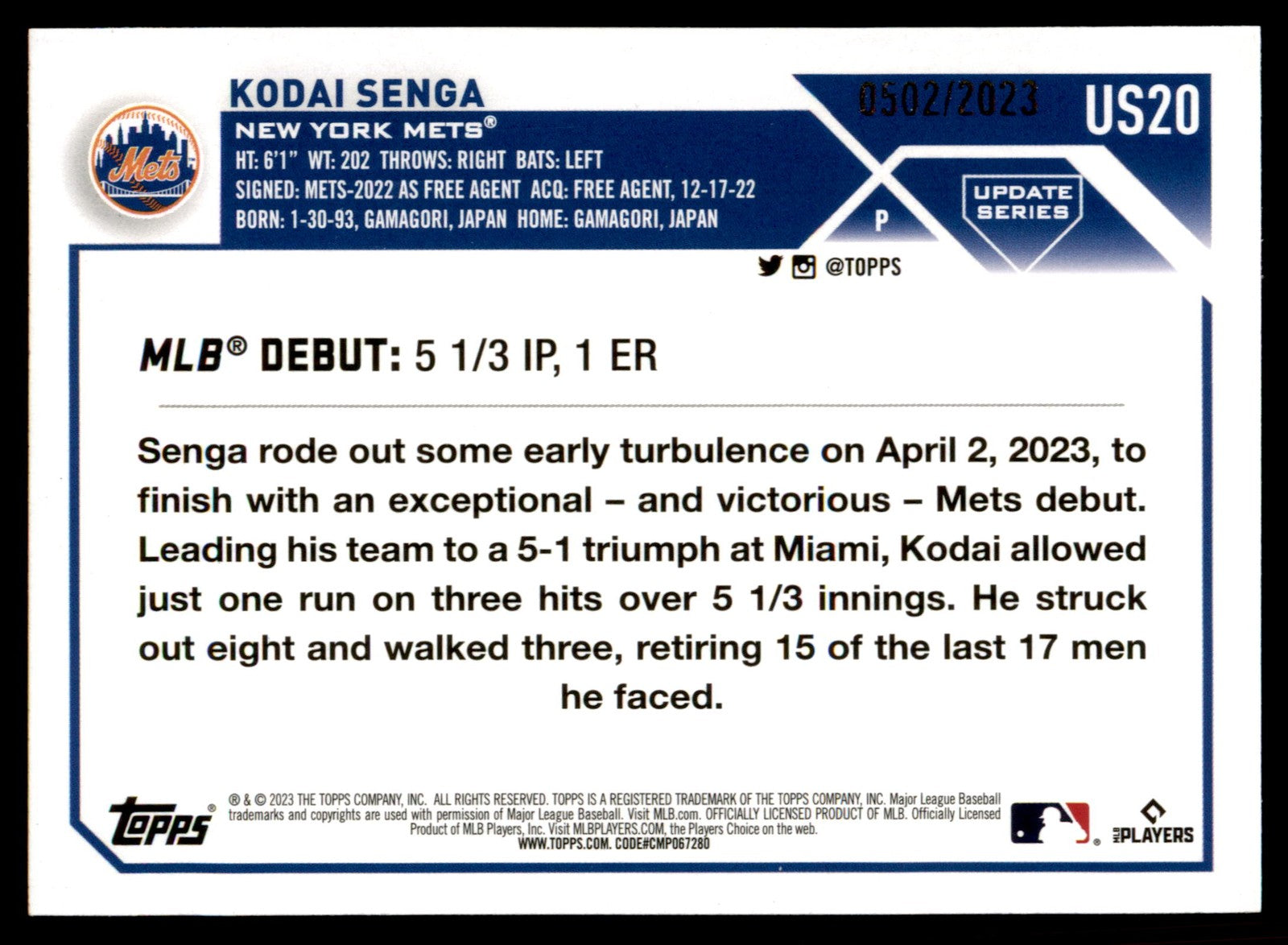 2023 Topps Update Kodai Senga #US20 Gold /2023
