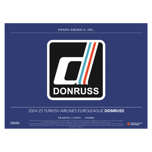 The highly anticipated 2024/25 Panini Donruss EuroLeague Basketball Hobby Box is here, packed with top-tier content for collectors and basketball fans alike. Featuring 4 packs per box and 12 cards per pack, this release delivers a dynamic mix of stars, legends, and rookies from the EuroLeague.