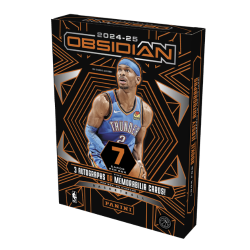 Panini Obsidian Basketball returns for the 2024-25 season with its signature sleek designs, rare parallels, and chase-worthy autographs. Known for its electric etch finishes and volcanic-inspired themes, Obsidian delivers some of the most visually stunning cards in the hobby.