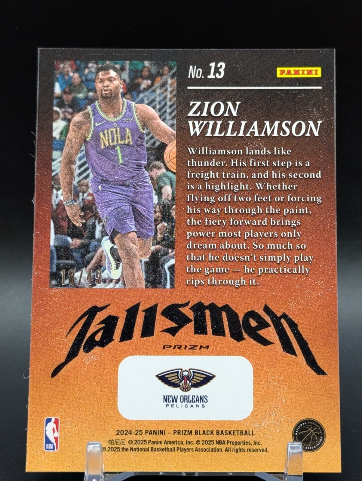 2024-25 Panini Prizm Black Zion Willamson Orange Talismen #/49 SP Pelicans