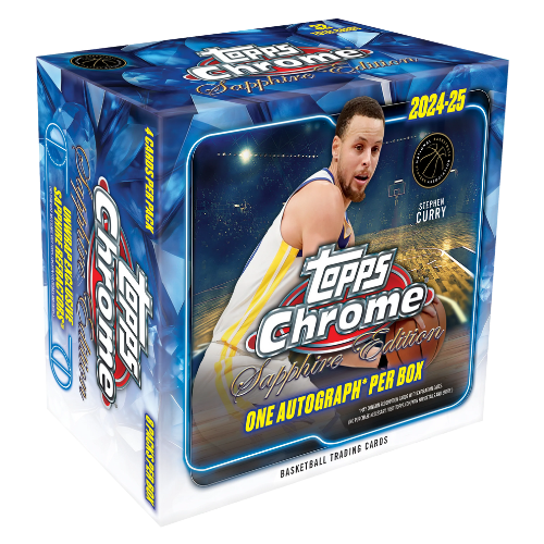 Step into the spotlight with the 2024/25 Topps Chrome Basketball Sapphire Edition Hobby Box. This premium release delivers a stunning 200-card base set printed on exclusive Sapphire Chrome stock, featuring top rookies, veteran stars, and all-time greats.