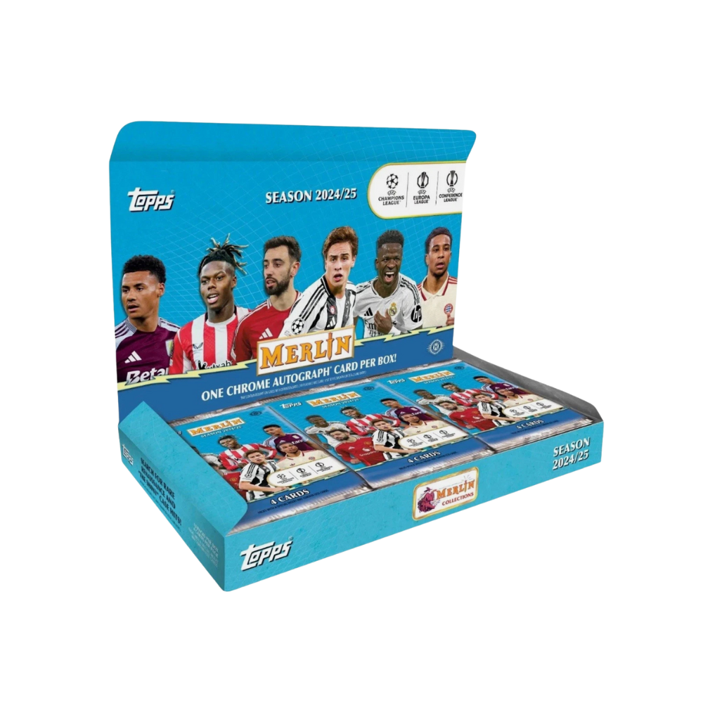 Featuring stars from the UEFA Champions League, UEFA Europa League, and UEFA Europa Conference League, collectors can chase the biggest names, breakout rookies, and exclusive inserts that define the Merlin identity. Look for chrome refractor parallels, rare color bursts, dynamic insert sets, and highly sought-after autographs from the brightest footballers in the world.
