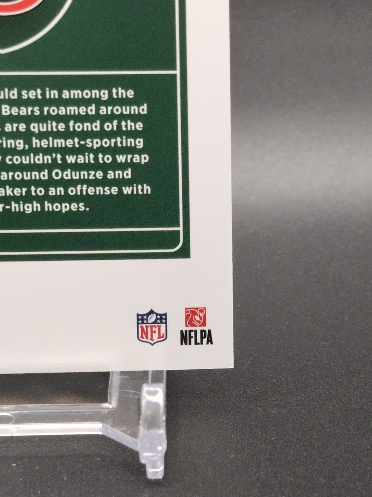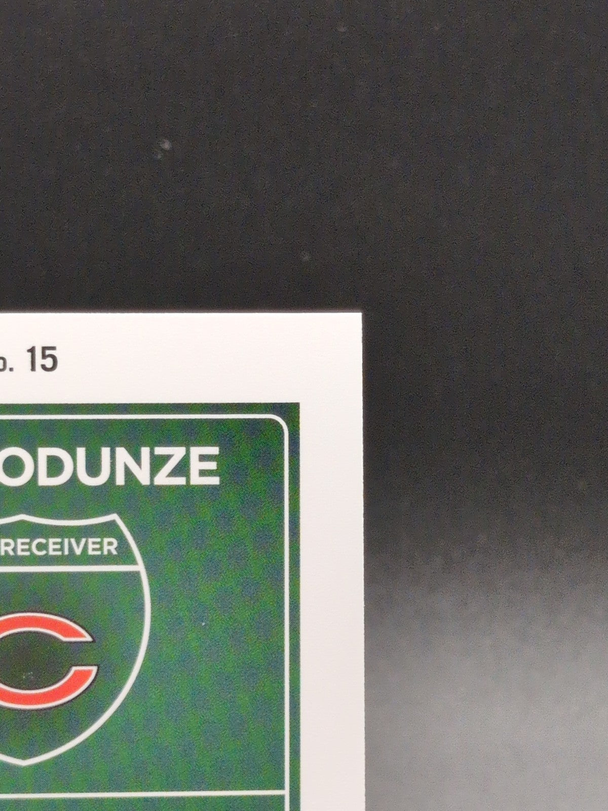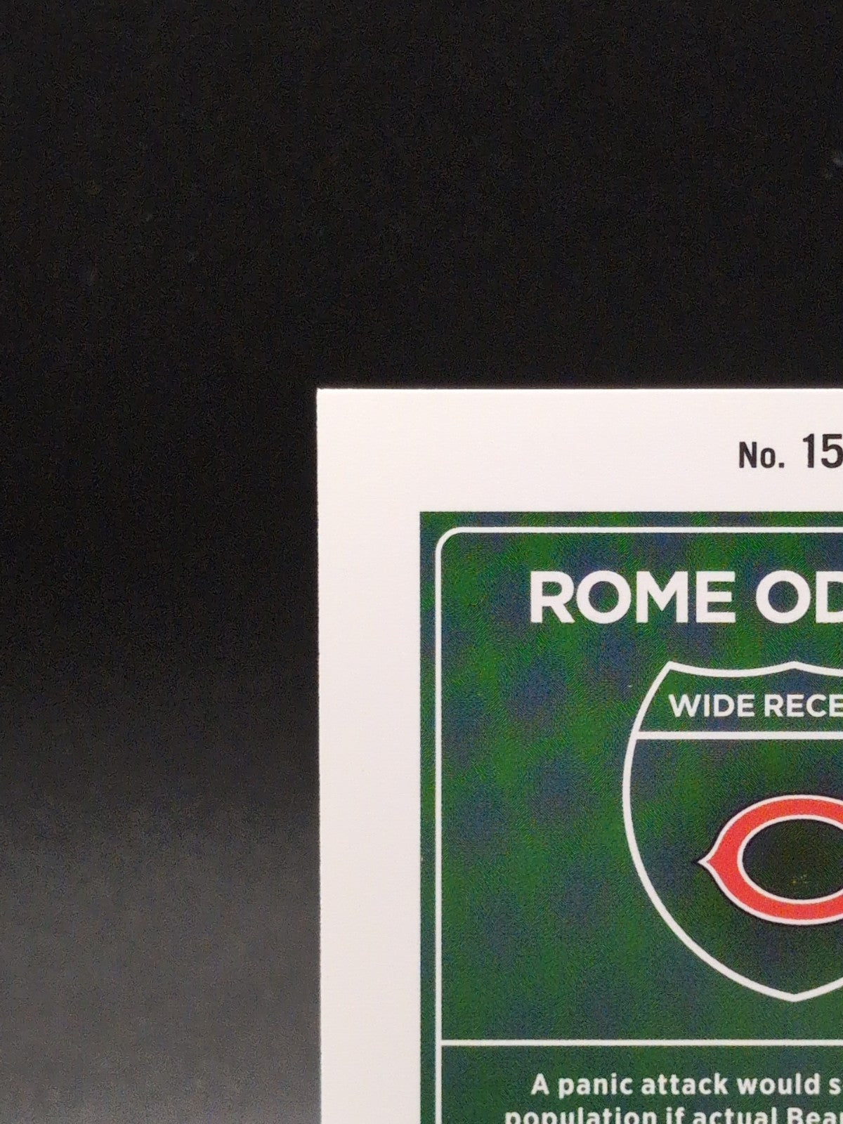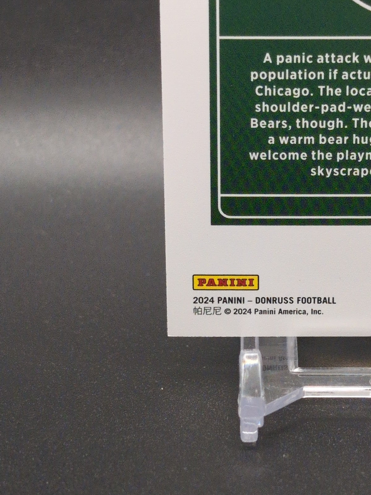 The 2024 Panini Donruss Downtown! trading card features rookie player Rome Odunze from the Chicago Bears. This card is part of the special Downtown! insert set and is made of card stock. It is a base parallel variety card with card number 15, manufactured by Panini in the United States. This collectible item is a must-have for fans of the National Football League looking to add a unique piece to their trading card singles collection. Listed With Mascot.