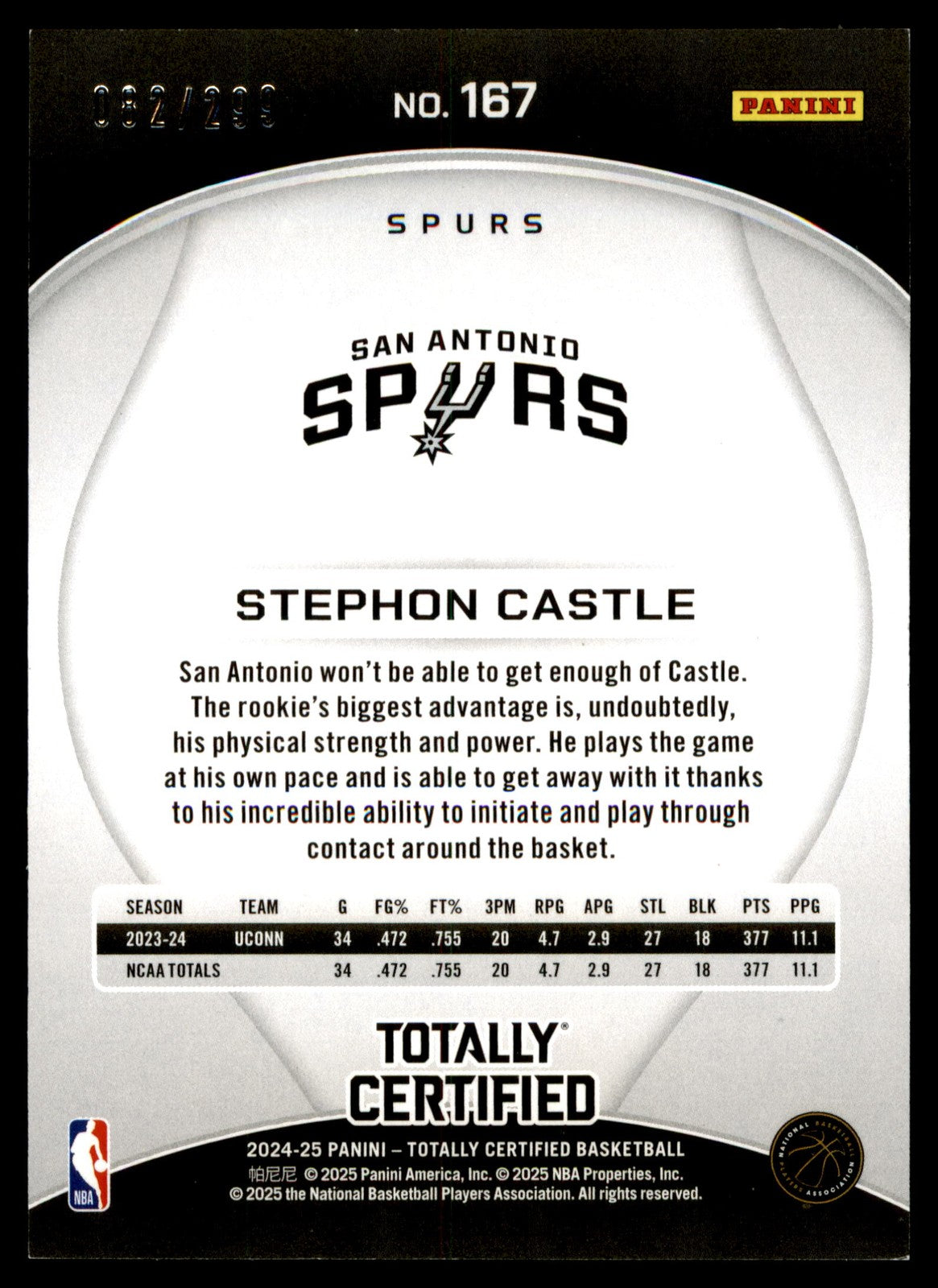 Item Description 2024 Panini Totally Certified Stephon Castle #167 Neon Orange Mirror /299 San Antonio Spurs Any visible lines on the images are due to the hi-res scanner and are not on the actual card. Refer to hi-res images to evaluate card condition Shipping Please refer to the listing specifics for shipping price. Return Policy No Returns for Trading Cards Consignment Options Looking to sell your cards, but don't have time? Reach out to use here on eBay and we will be happy to assist you! Listed With Mascot.
