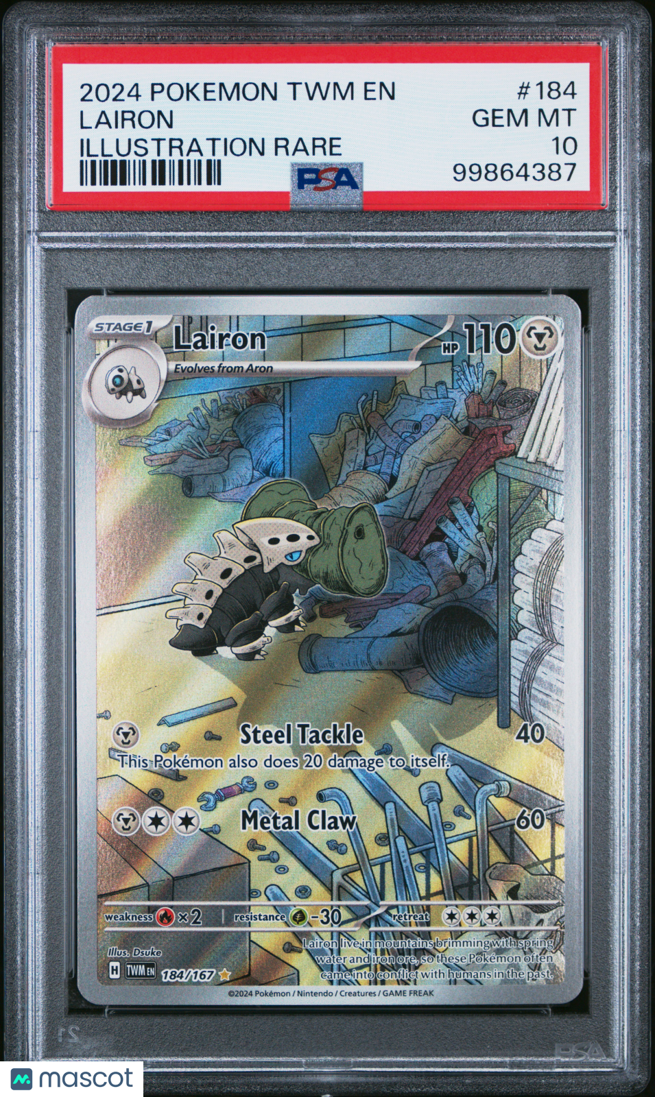 2024 Pokemon TWM EN-Twilight Masquerade Lairon #184 Illustration Rare PSA 10