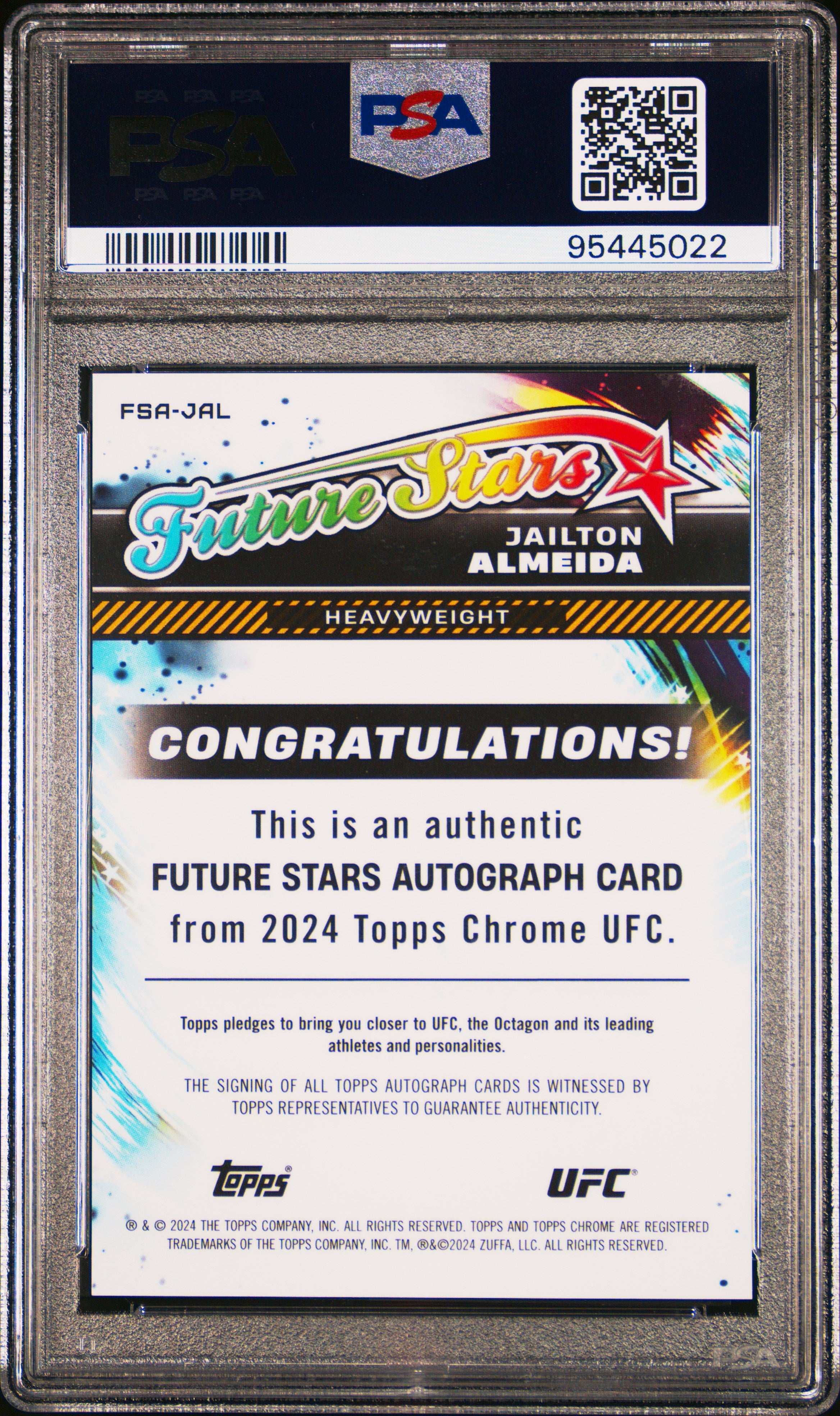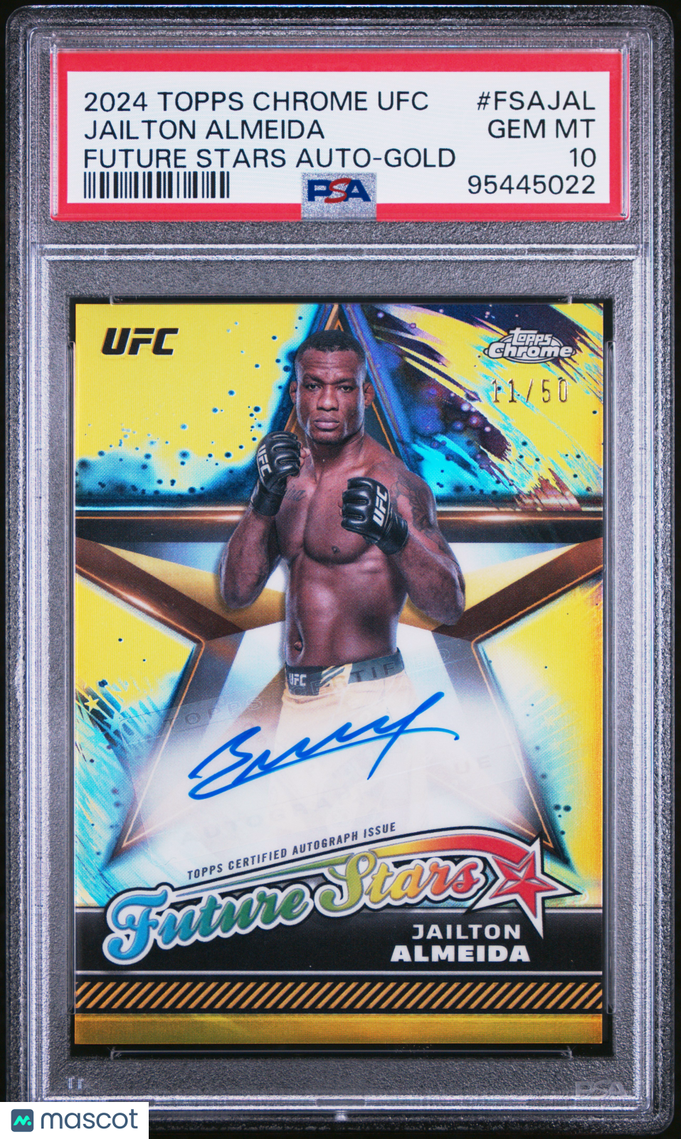 2024 Topps Chrome UFC Future Stars Autographs Jailton Almeida #FSAJAL Gold Ref 11/50 PSA 10