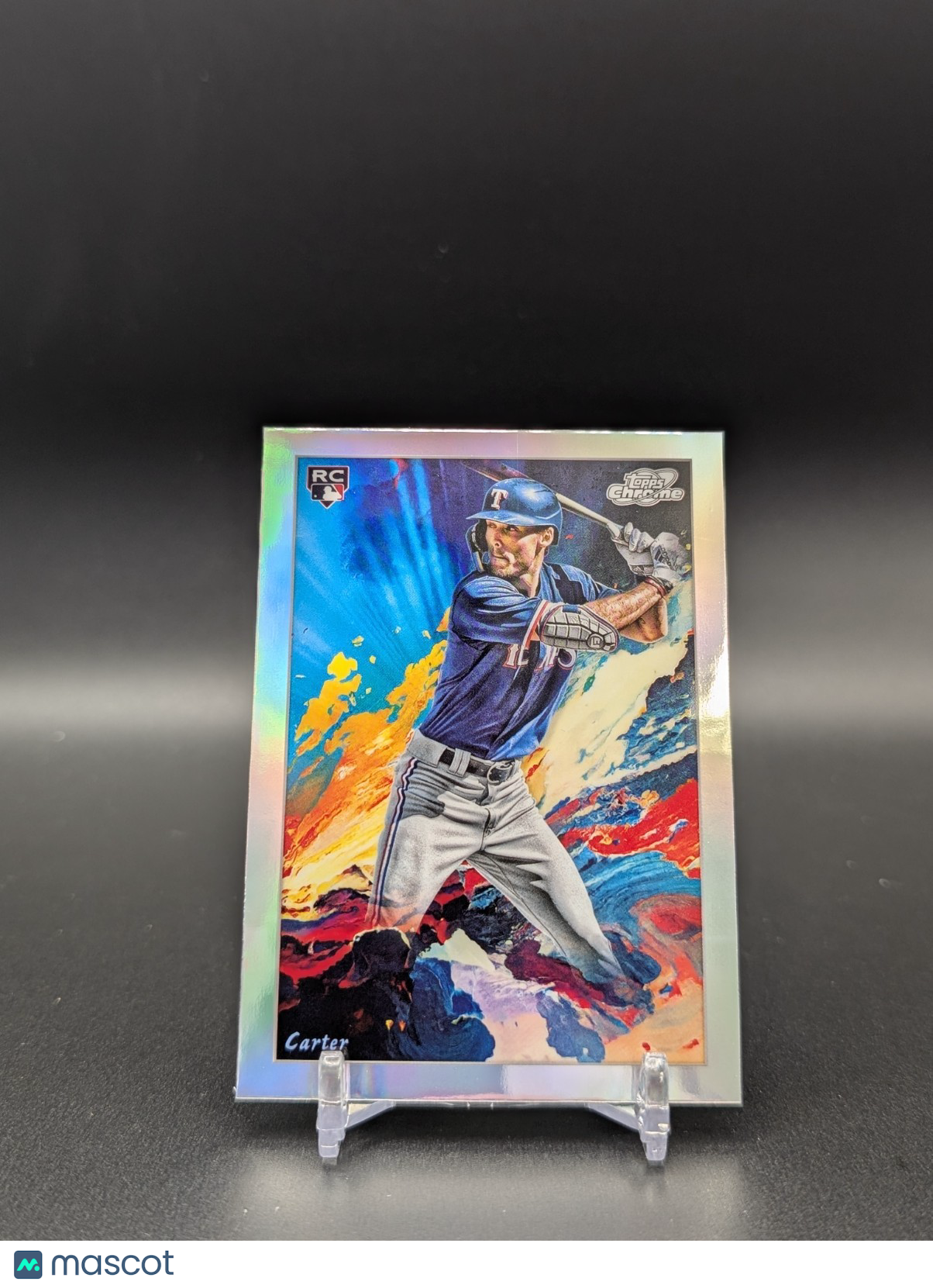 Elevate your baseball card collection with the 2024 Topps Cosmic Chrome Stars In The Night Rookie Card, featuring the up-and-coming Texas Rangers' own Evan Carter. As part of the esteemed Stars In The Night insert set, card number STN-5 shines in its Cosmic Chrome parallel variety, adding a stellar dimension to this collectible. This standard-sized sports trading card captures the essence of Carter's debut season, making it a must-have for fans and collectors alike. Crafted by Topps, a trusted name in the industry, this card is not autographed, preserving the sleek design of the 2024 Topps Cosmic Chrome series. Listed With Mascot.