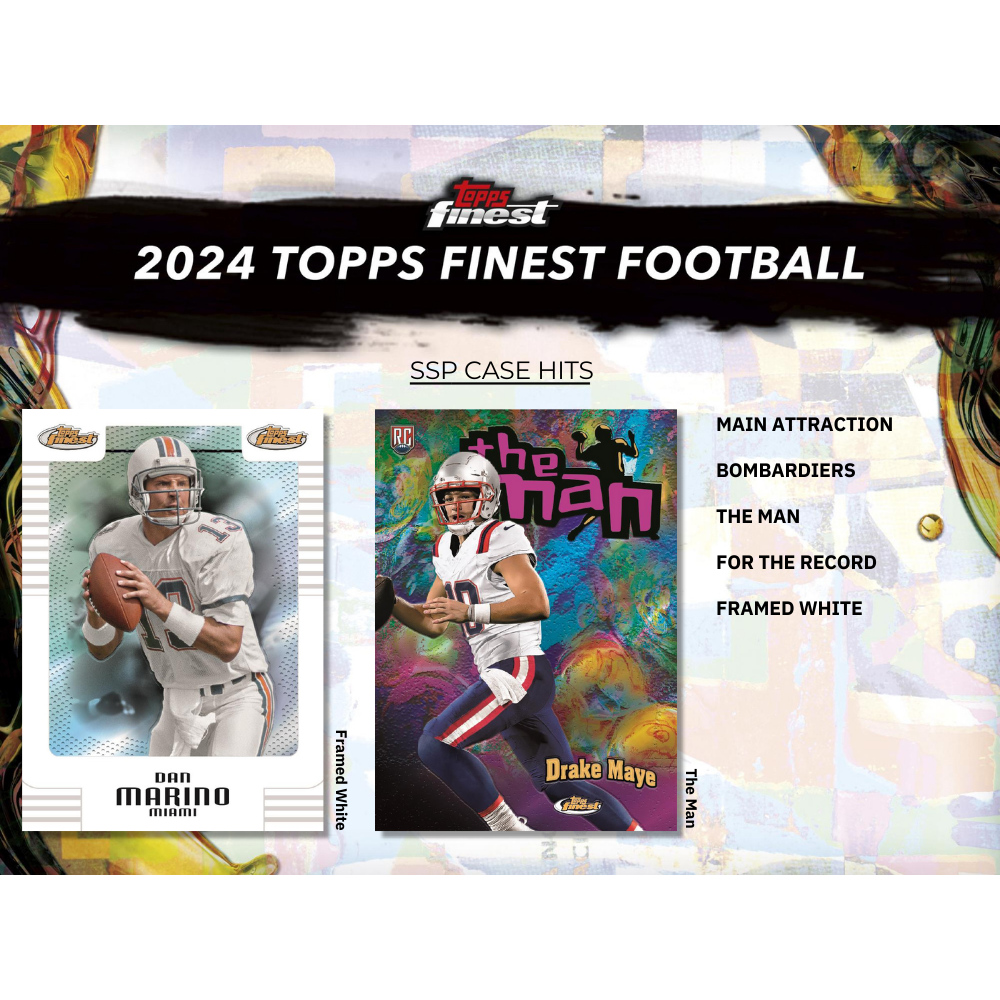 With 10 cards per pack, 1 pack per box, and 8 boxes per case, 2024 Topps Finest Football is a must-have for collectors and breakers alike. Whether you're chasing the next big rookie star or pulling legendary autographs, this set is loaded with premium content, vibrant designs, and ultra-rare inserts. Secure your box today and experience the finest in football card collecting!
