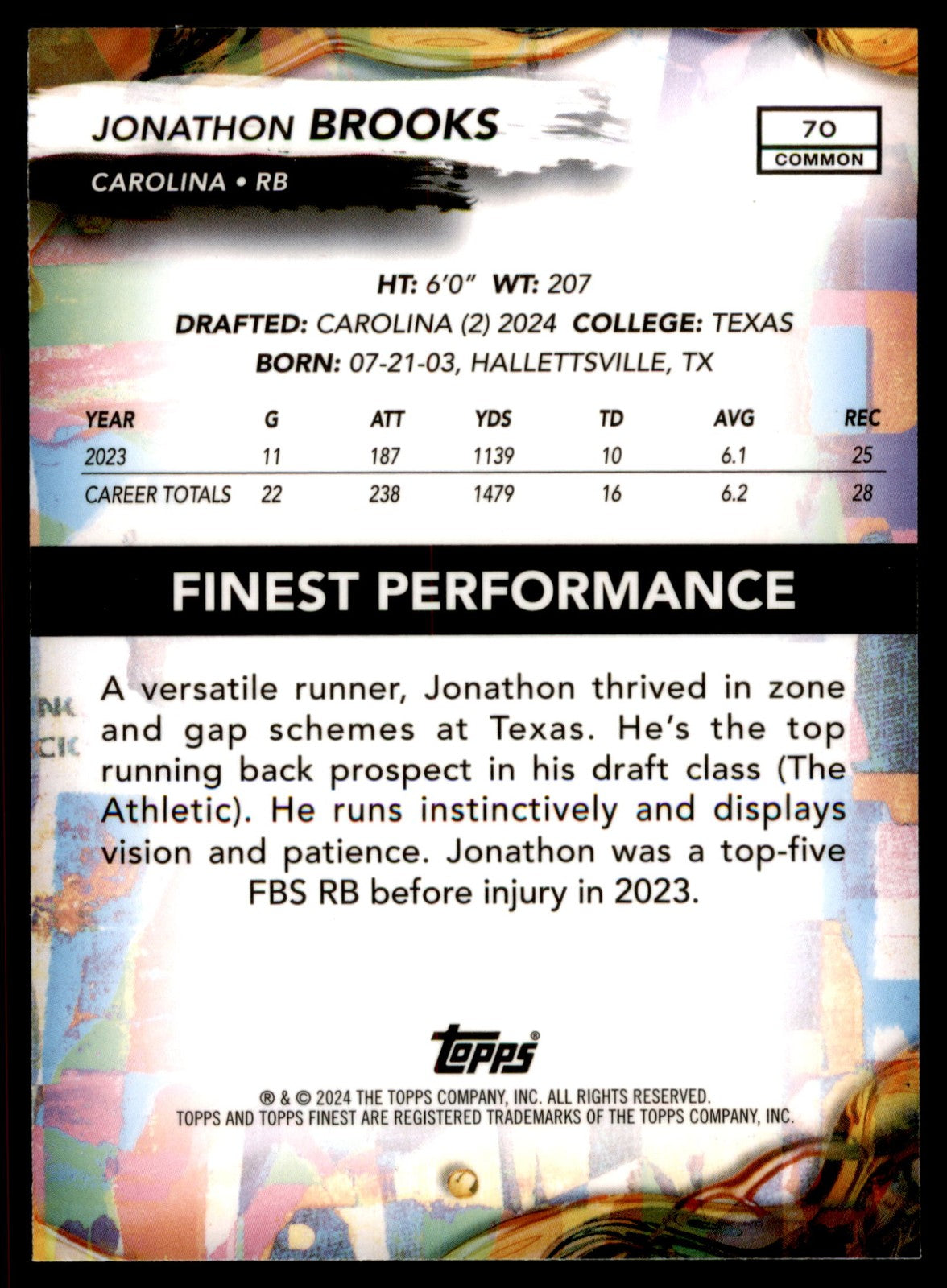 2024 Topps Finest Jonathon Brooks #70 Sky Blue Refractors
