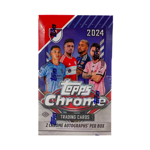 The beautiful game shines brighter than ever with the 2024 Topps Chrome MLS Hobby Box. Packed with premium Chrome technology, this release delivers the stars, rookies, and legends of Major League Soccer in stunning detail. Whether you’re chasing rookie phenoms or collecting MLS icons, this box is a must-have for soccer fans and collectors.