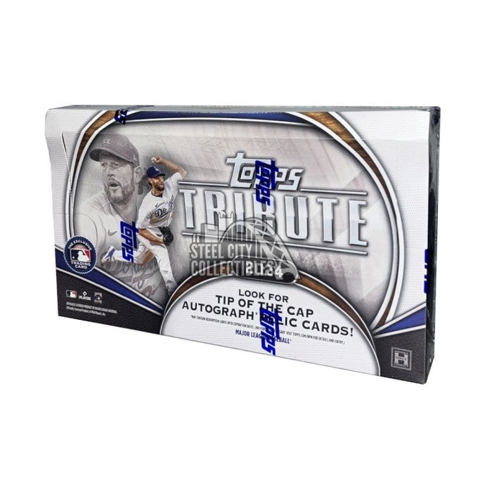 2024 Topps Tribute is approaching with an all-new set of high-end Tribute designs featuring the top active players and legends of the game. Look for new auto and autographed relic inserts like Tip of the Cap Autograph Relics and Pillars of the Game Autographs and continue the chase for the player Tribute Career Achievement Award set with a focus on pitching superstar Clayton Kershaw!