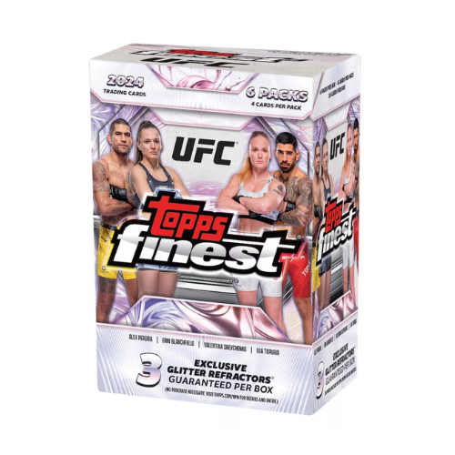 Get ready to step into the octagon with Topps Finest UFC, the ultimate trading card set for MMA enthusiasts! Packed with an array of autographs, refractors, inserts, and thrilling case hits, this set is a must-have for collectors and UFC fans alike. Experience the rush of chasing down exclusive parallels and building the complete 300-card base set, each card shining with vibrant color and advanced tech designs.