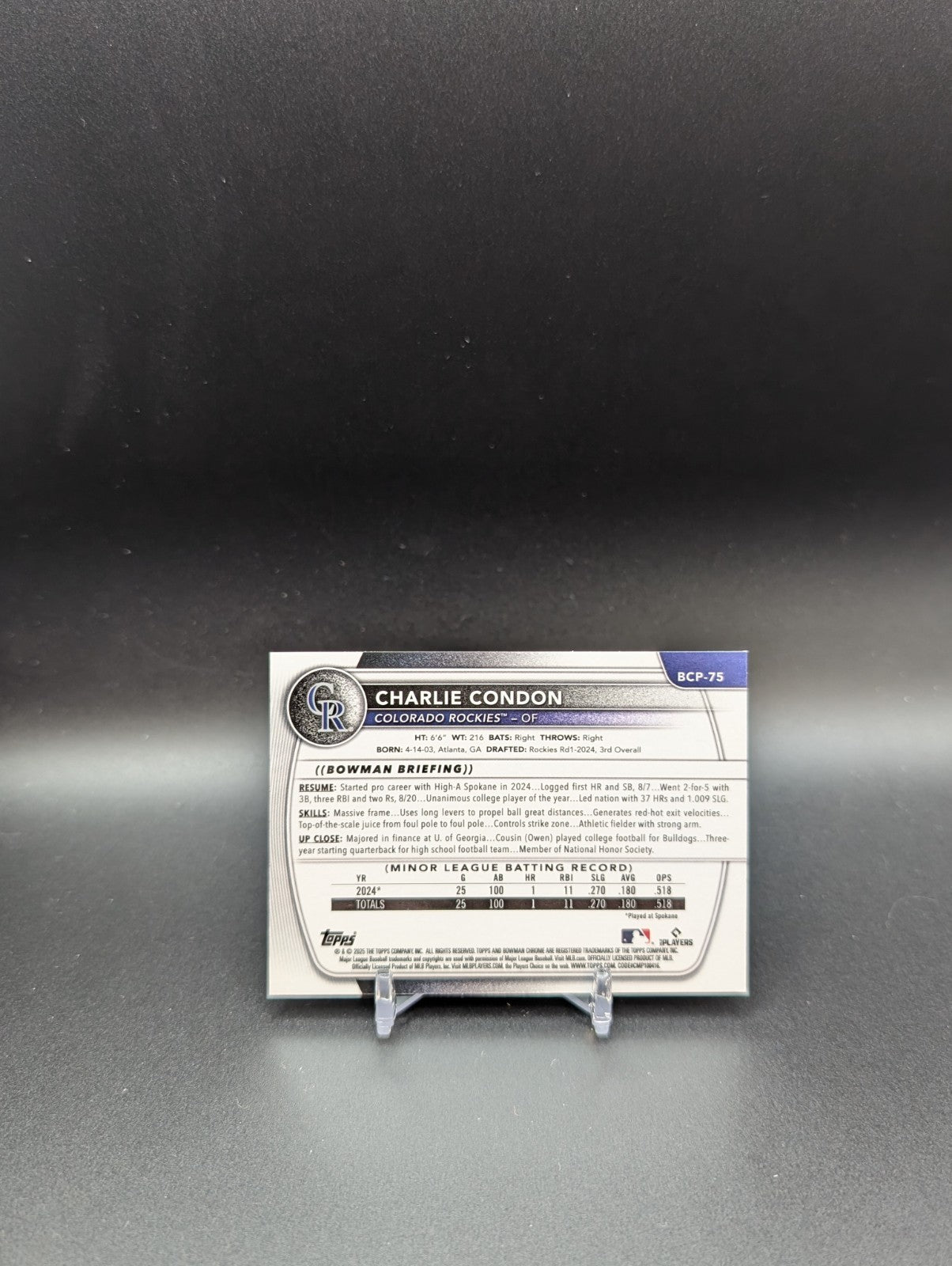 2025 Bowman Charlie Condon 1st Bowman Chrome Wave /350 Rockies