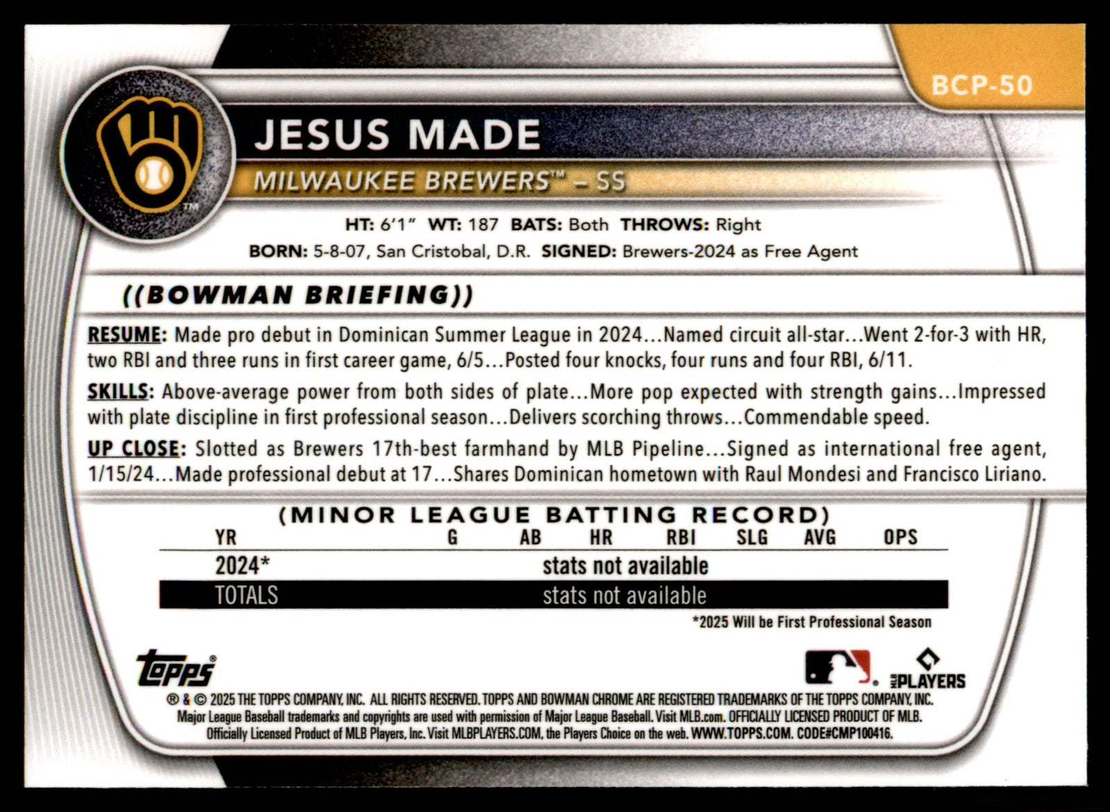 2025 Bowman Jesus Made #BCP-50 Bowman Chrome Prospects