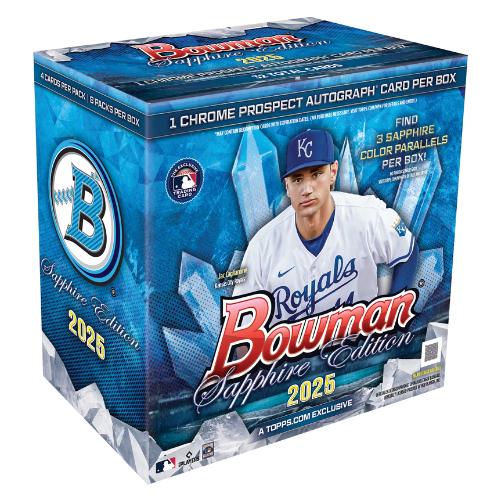 Secure your 2025 Bowman Sapphire Edition Baseball Hobby Box today and start building the ultimate prospect collection!