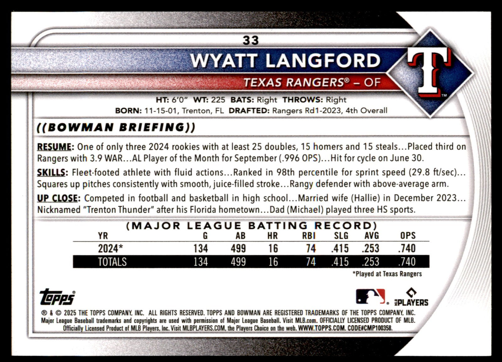 2025 Bowman Wyatt Langford #33 Sky Blue /499