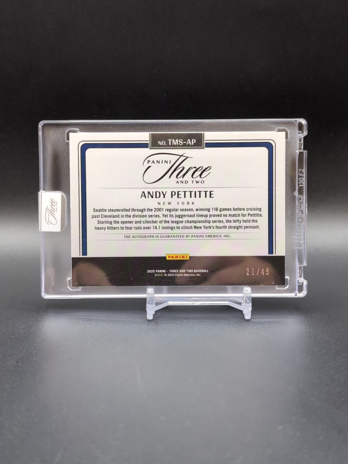 2025 Panini Three And Two Andy Pettitte Timeless Moments /49 Auto NY Yankees