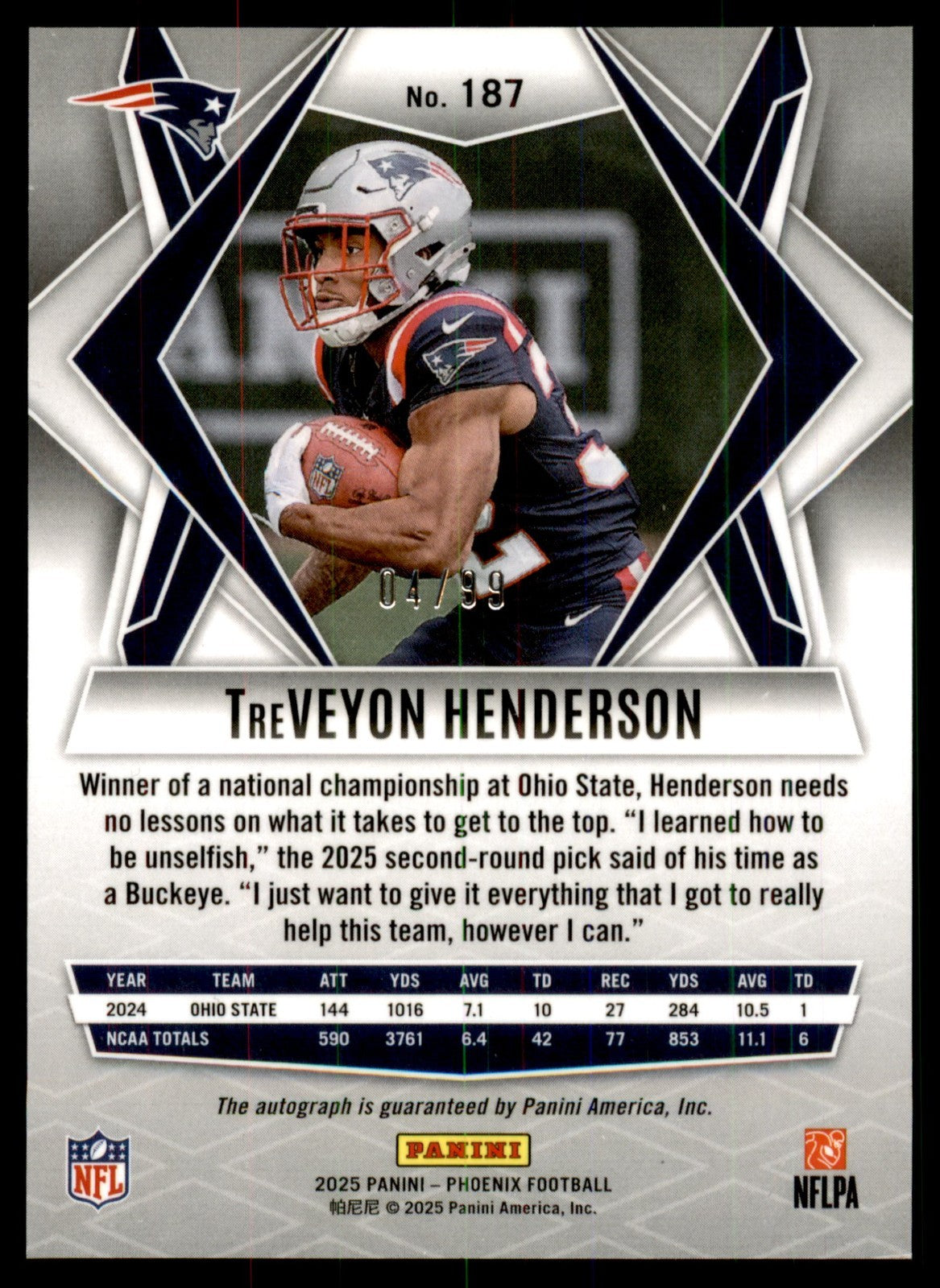 2025 Phoenix TreVeyon Henderson Rookies Auto Prizm /99 New England Patriots