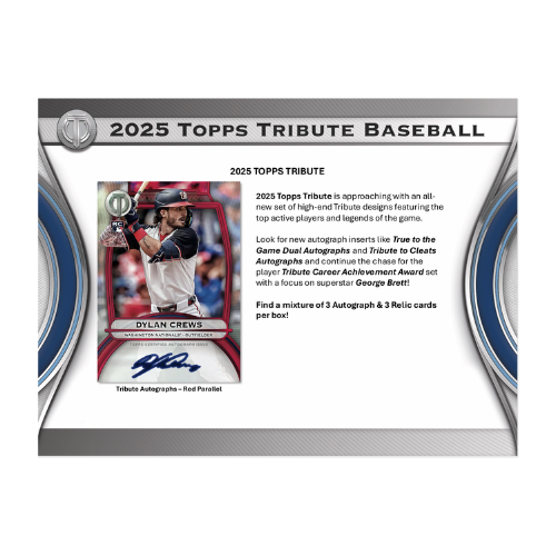 Limited in quantity and packed with value, Topps Tribute 2025 is the perfect mix of prestige and nostalgia. Ideal for serious collectors or anyone looking to pull iconic hits straight from the pack.