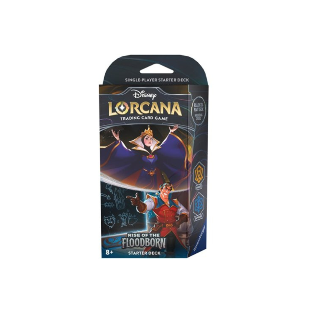 The Disney Lorcana starter deck includes everything you need to start playing against another player who has their own deck. Through these decks, you'll get a taste of the rich story and varied characters of Disney Lorcana. There are two starter decks available for Disney Lorcana: Rise of the Floodborn. Each deck has 60 cards and features two ink colors with distinct play styles. If you’re new to trading card games, or if you want to experience the game with a deck designed and tested by Team Lorcana, this is a good place to start.