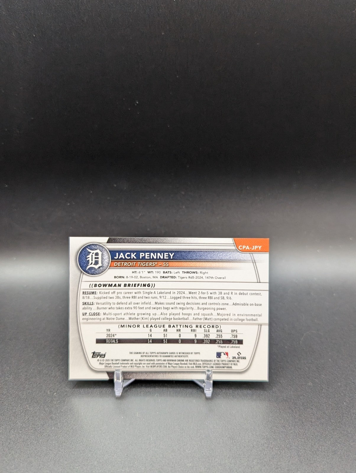 Jack Penney 2025 Bowman 1st Bowman On Card Auto Tigers