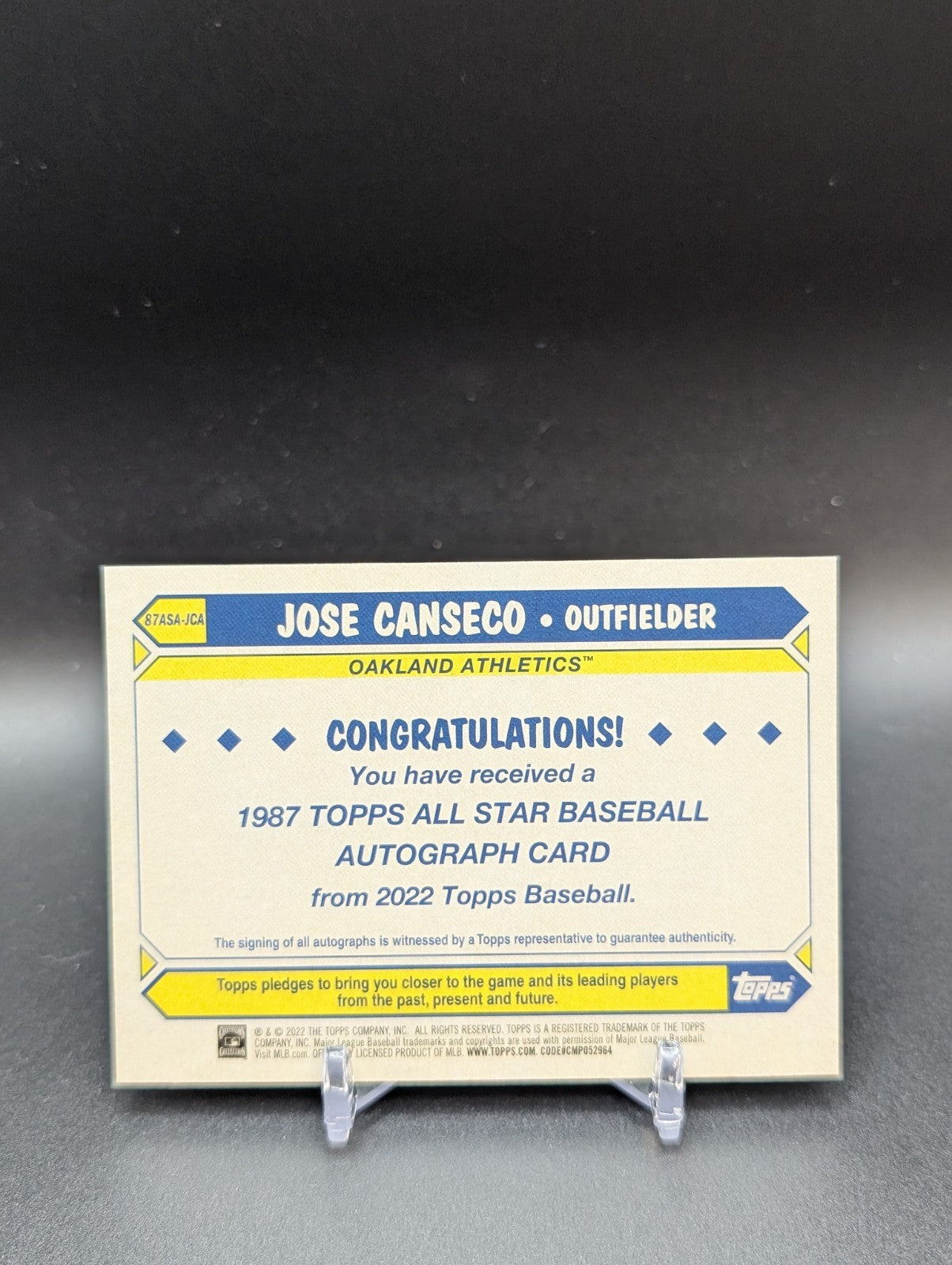 Jose Canseco 2022 Topps '87 All-Star Autographs #87ASAJCA Oakland Athletics MLB