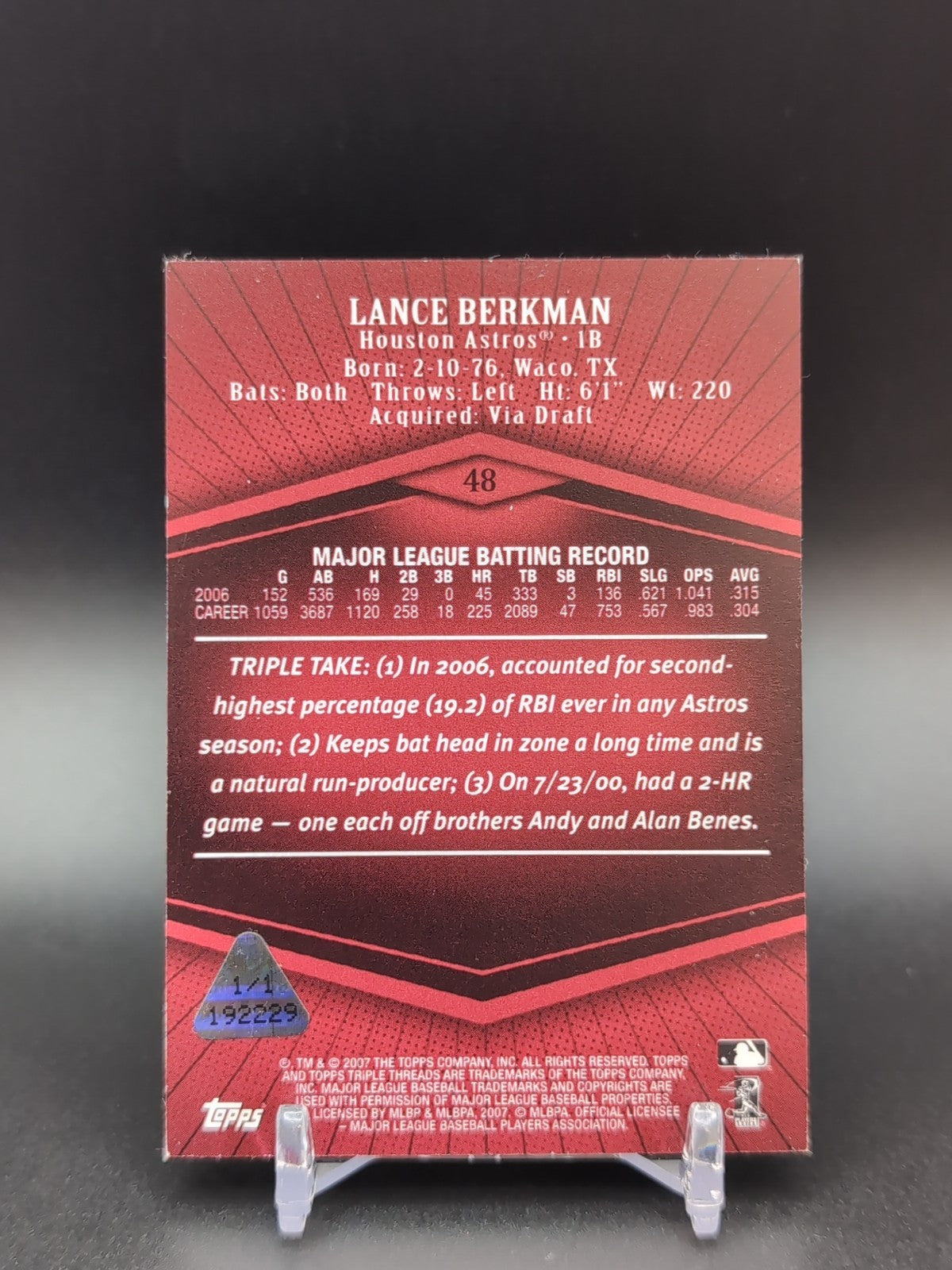 Lance Berkman 2007 Topps Triple Threads Yellow Printing Press Plate 1/1 Astros