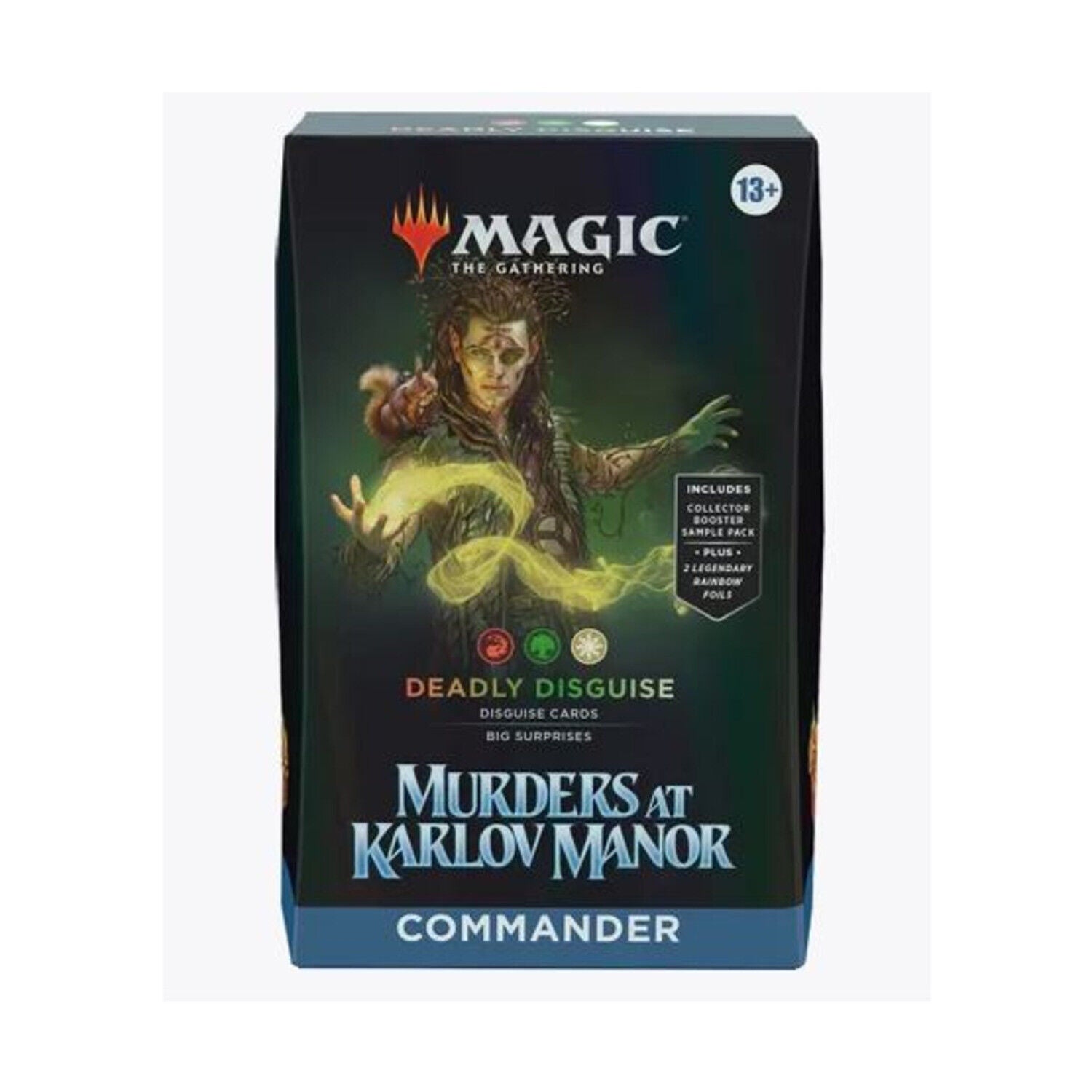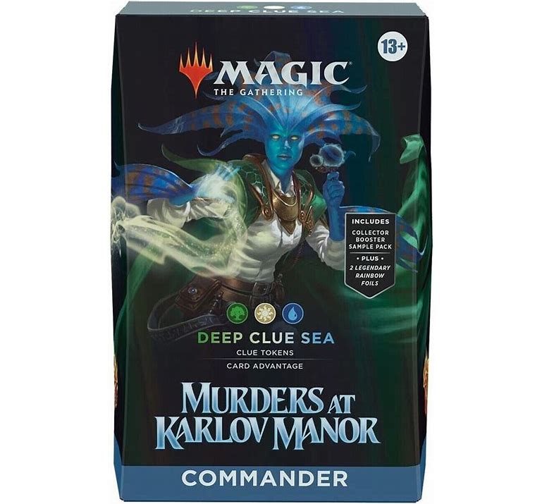 - COLLECT SPECIAL TREATMENT CARDS—Each deck also comes with a 2-card Collector Booster Sample Pack containing 2 alt-border cards from the Murders at Karlov Manor set, including 1 Rare or Mythic Rare and at least 1 Traditional Foil card
