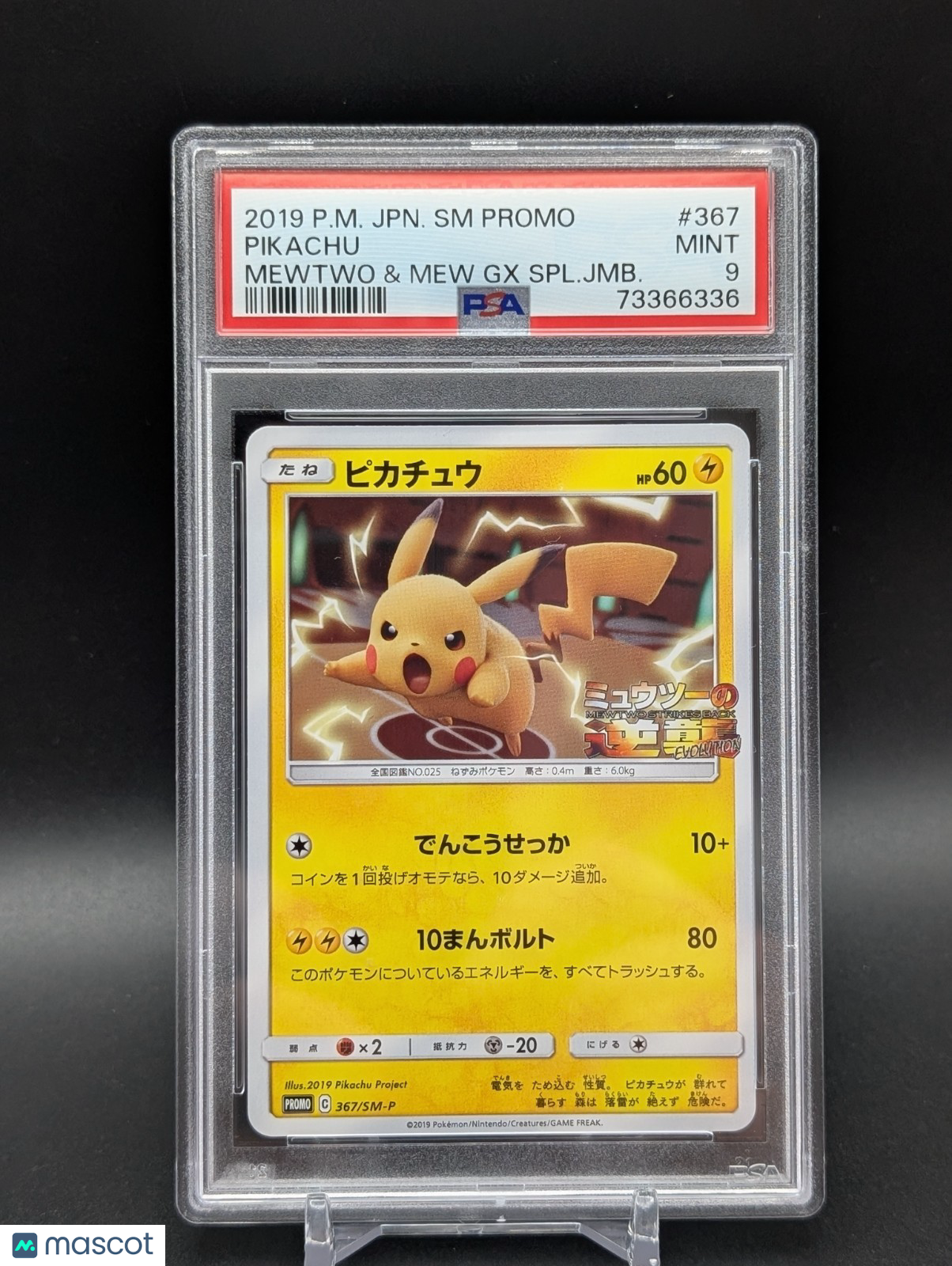 Pikachu Promo Mewtwo & Mew GX Special Tag 367/SM-P Japanese Pokemon - PSA 9