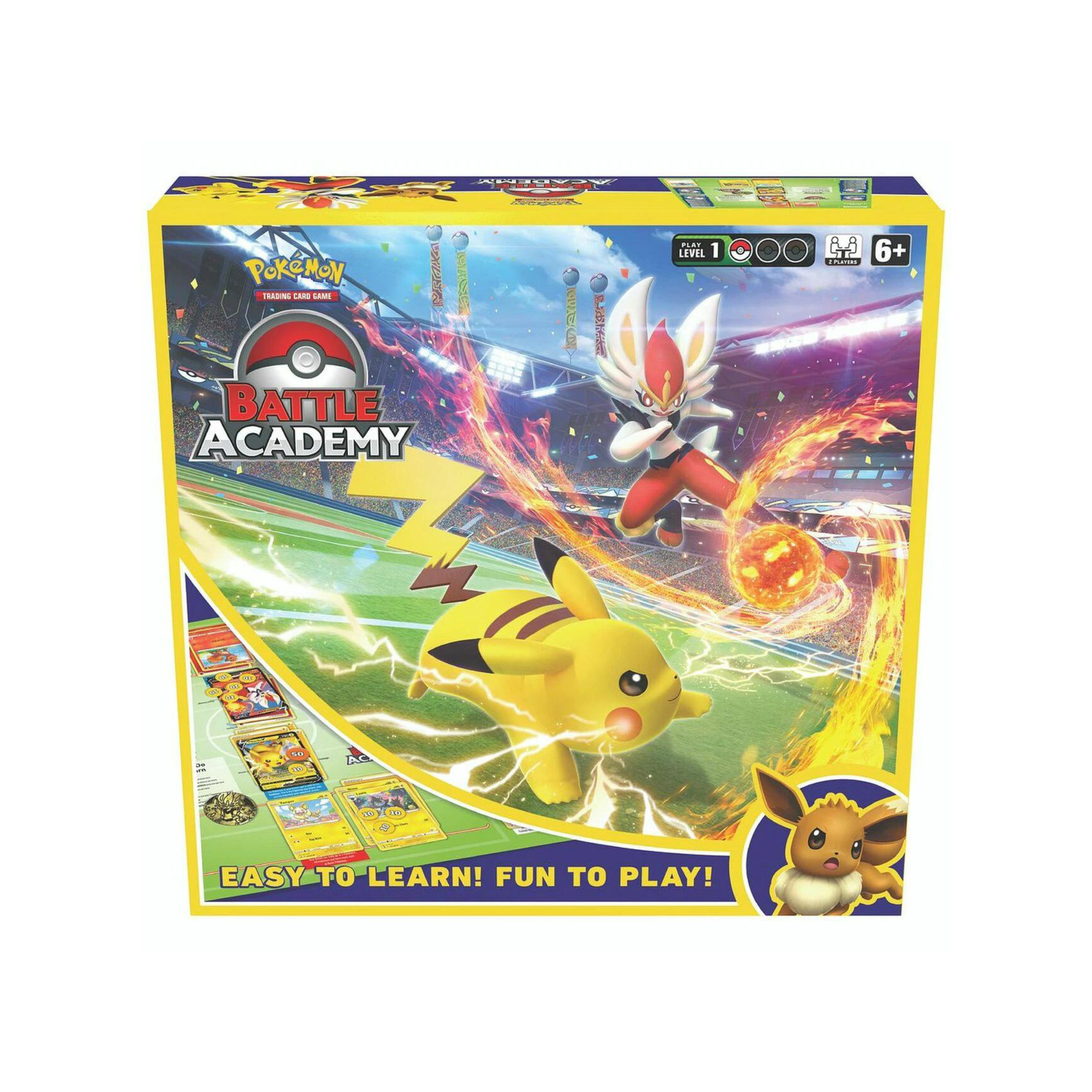 Choose between fiery, feisty Cinderace or electrifyingly engaging Pikachu to lead your team in a heads-up battle against another Trainer. Then, switch up the decks to play adorable Eevee against Cinderace or Pikachu, and lead a different team of Pokémon into the arena!