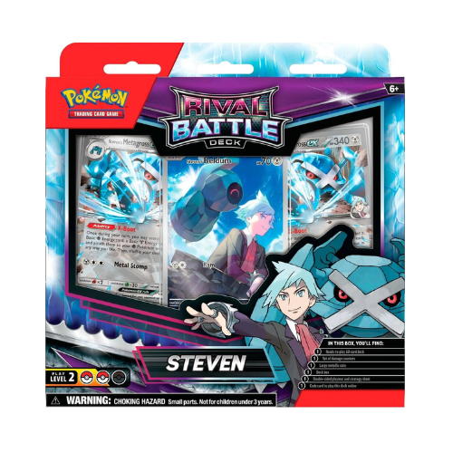 Unleash the power of Hoenn Champion Steven and his formidable Steel-type Pokémon with the Pokémon TCG: Rival Battle Deck – Steven. Built for exciting head-to-head battles, this 60-card deck is designed to deliver powerful plays right out of the box. Featuring two mighty Pokémon ex, Steven’s deck is packed with strategy, strength, and everything you need to jump into the action. Perfect for new players or seasoned trainers looking to sharpen their competitive edge, this deck brings the thrill of championship battles straight to your table.