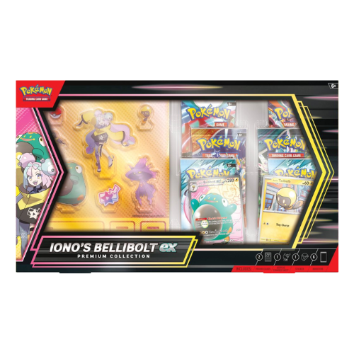 Charge into battle with the power of Levincia Gym Leader Iono and her electric partner, Bellibolt ex. This premium Pokémon TCG collection delivers explosive gameplay potential with Bellibolt ex’s Electric Streamer Ability, powering up your team with shocking speed. Perfect for collectors and competitive players alike, this set also features exclusive collectibles that bring Iono’s vibrant energy to life.